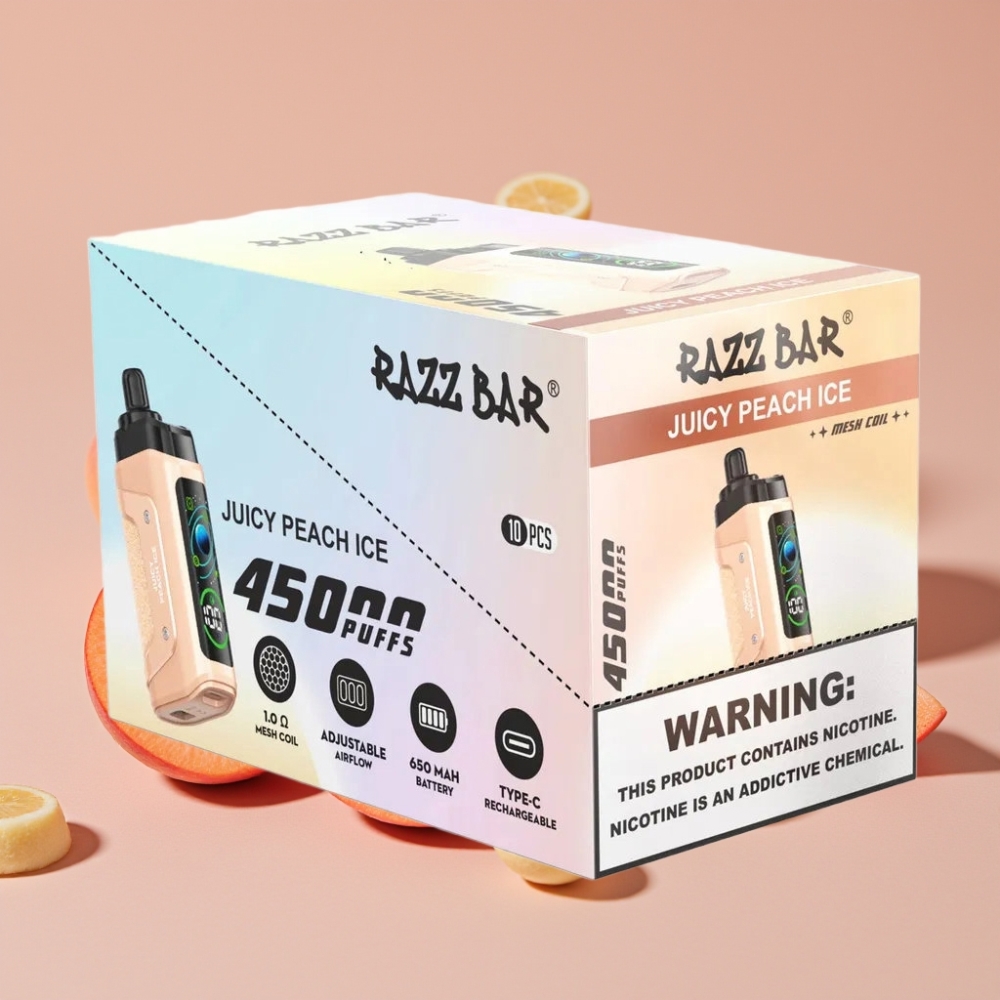 Razz Bar 45000 Puffs Engangsvape Juicy Peach Is Mesh Coil Justerbar Luftstrøm Type-C