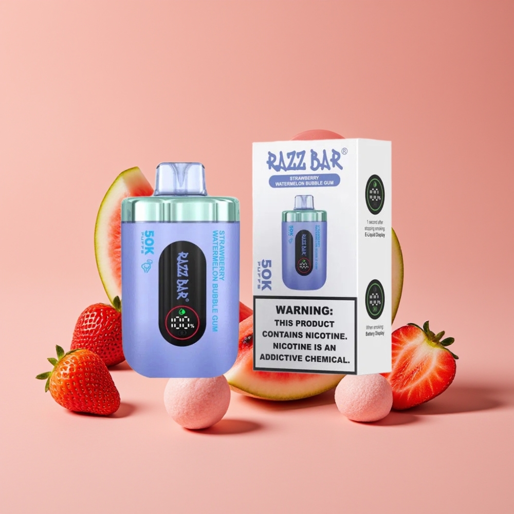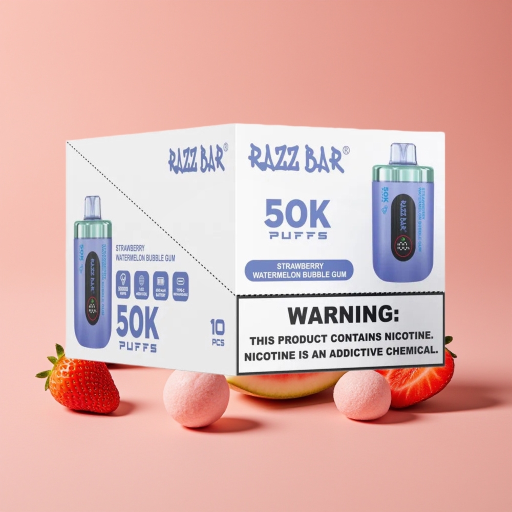 Razz Bar 50K Puffs Engangs Vape Jordbær Vannmelon Tyggegummi Type-C Ladbar 2% Nikotin