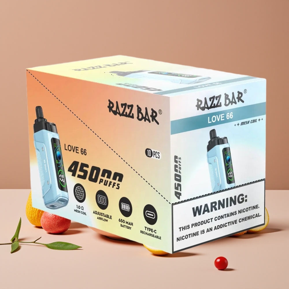 Razz Bar 45000 Puffs Engangsvaper Kjærlighet 66 Justerbar Luftstrøm Type-C-Oppladbar